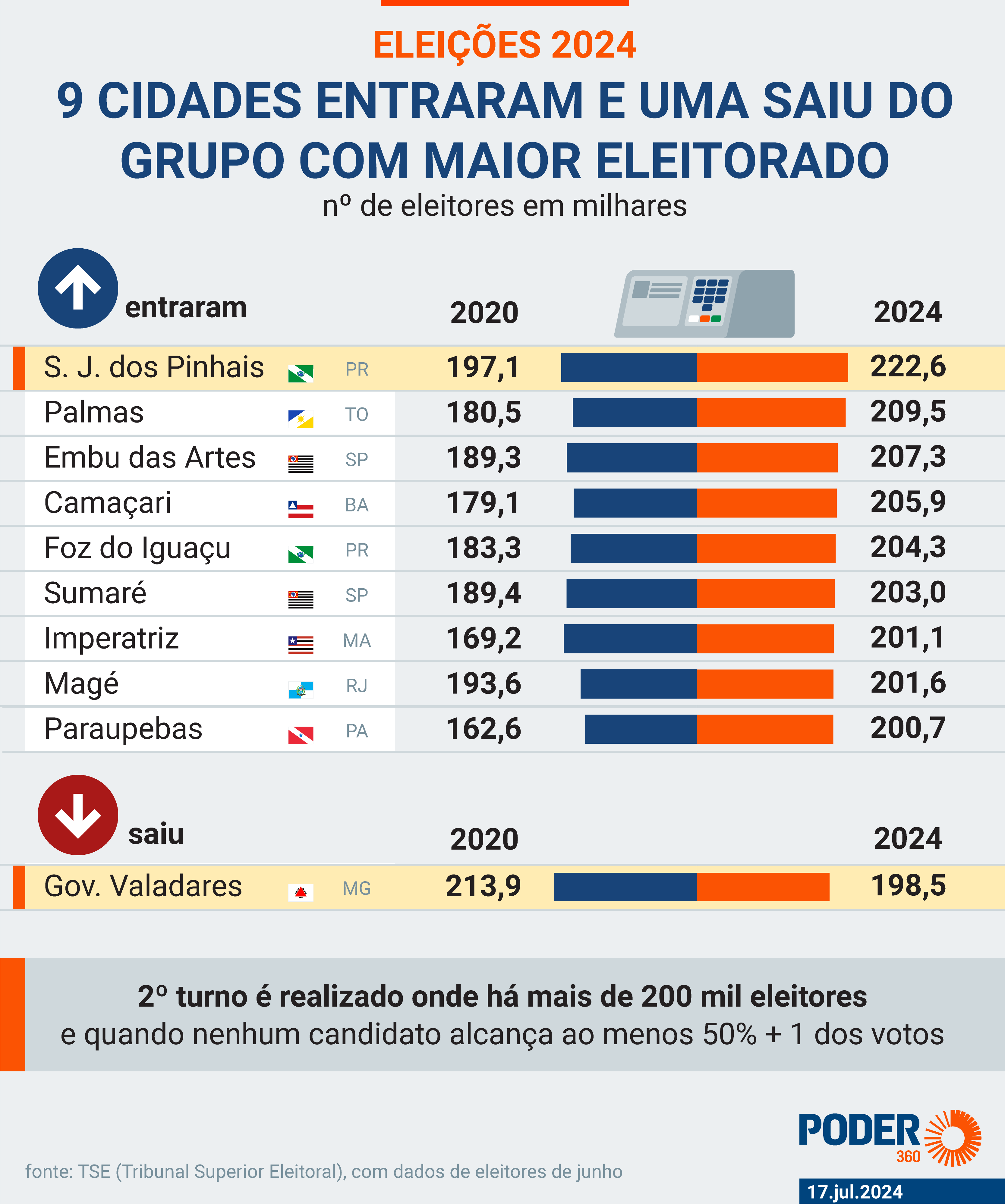 - O número representa uma abstenção de 21,7% dos eleitores aptos a votar, um percentual maior ao de 2016 (17,6%), mas menor que ao de 2020 — que foi recorde muito por conta da pandemia.